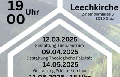 An diesen Mittwochen gibt es heuer einen Zentrumstag mit Gebet und Mittagessen im Theozentrum. Studierende und andere kochen für uns auf und wir haben Raum für Begegnung und kulinarische Buntheit. Es gibt immer eine vegetarische Alternative!
