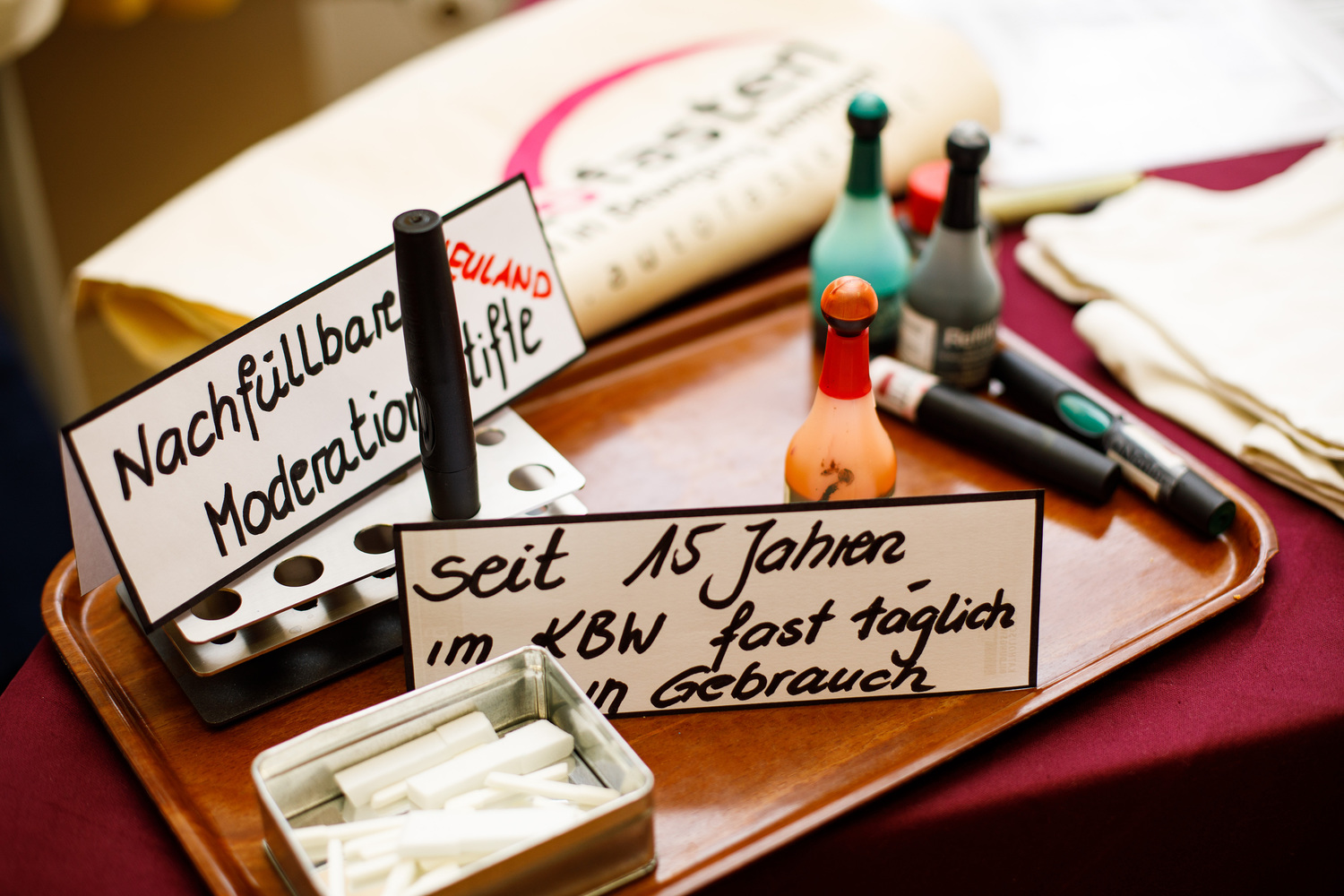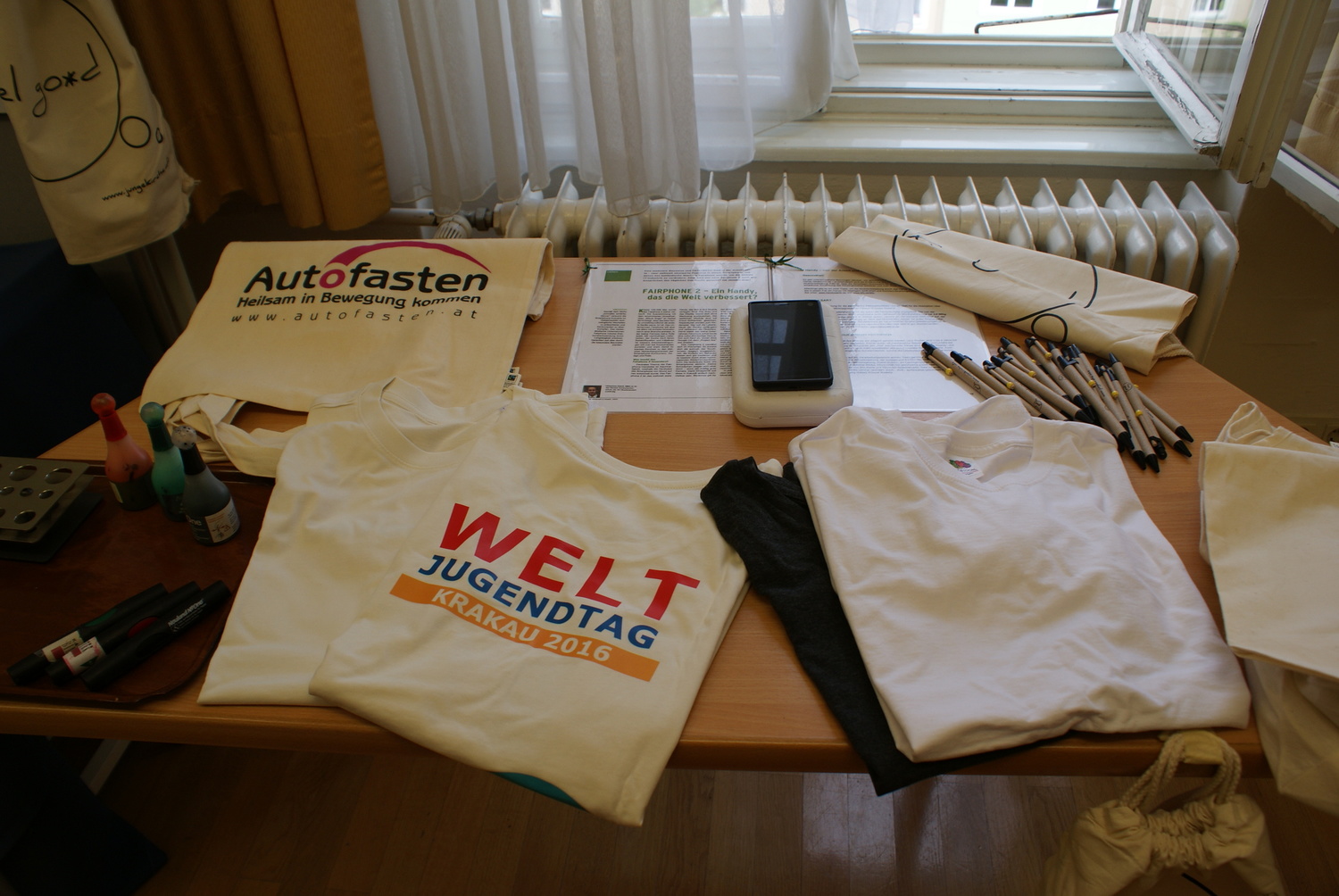 Einige Kolleginnen stellten persönlich nachhaltige und bewährte Produkte vor: nachfüllbare Textmarker (seit 15 Jahren im KBW im Verwendung!), den Locher ohne Metallklammern, das Fairphone (reparierfähiges Handy) und, last but not least, viele Tipps für eine gesunde und ökologische Sitzungsverpflegung (Liste im Anhang).
