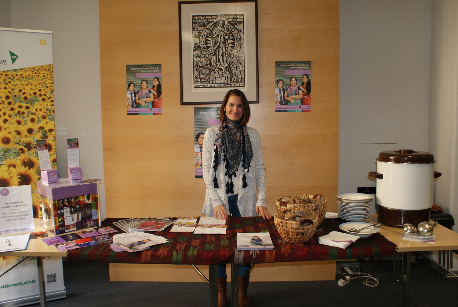 Geteilt wurde beim Büroflohmarkt aber nicht nur die Freude an der Schöpfung und am Geben und Nehmen, sondern auch ein großer Topf heiße Suppe zu Gunsten der Aktion Familienfasttag. Eine willkommene Abwechslung für jede/n Schnäppchenjäger/in um zwischendurch seine/ihre Kräfte zu sammeln.