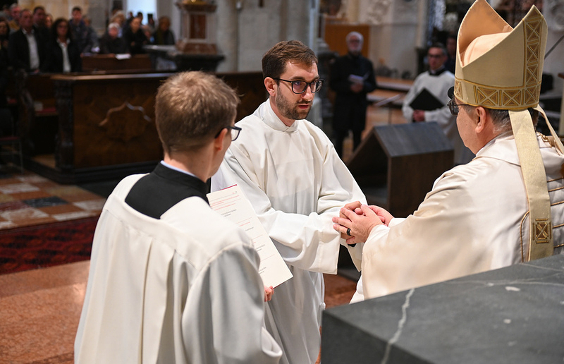 "Kämpfe den guten Kampf des Glaubens", so der Bischof, „bleibe standhaft, lieber Weihekandidat, durch Dein Wort und mehr noch Dein Leben inmitten all dessen, was die Menschen in Gesellschaft und Kirche auseinandertreibt. Bleib eine lebendige, geduldige Erinnerung und Ermutigung, die Hoffnung gibt. […] Durch Dich wird hier und heute angreifbar deutlich: ‚Gott kommt - uns - im Heute entgegen!‘ Und dafür können wir einfach nur dankbar sein.“, so Bischof Krautwaschl in seiner Predigt.