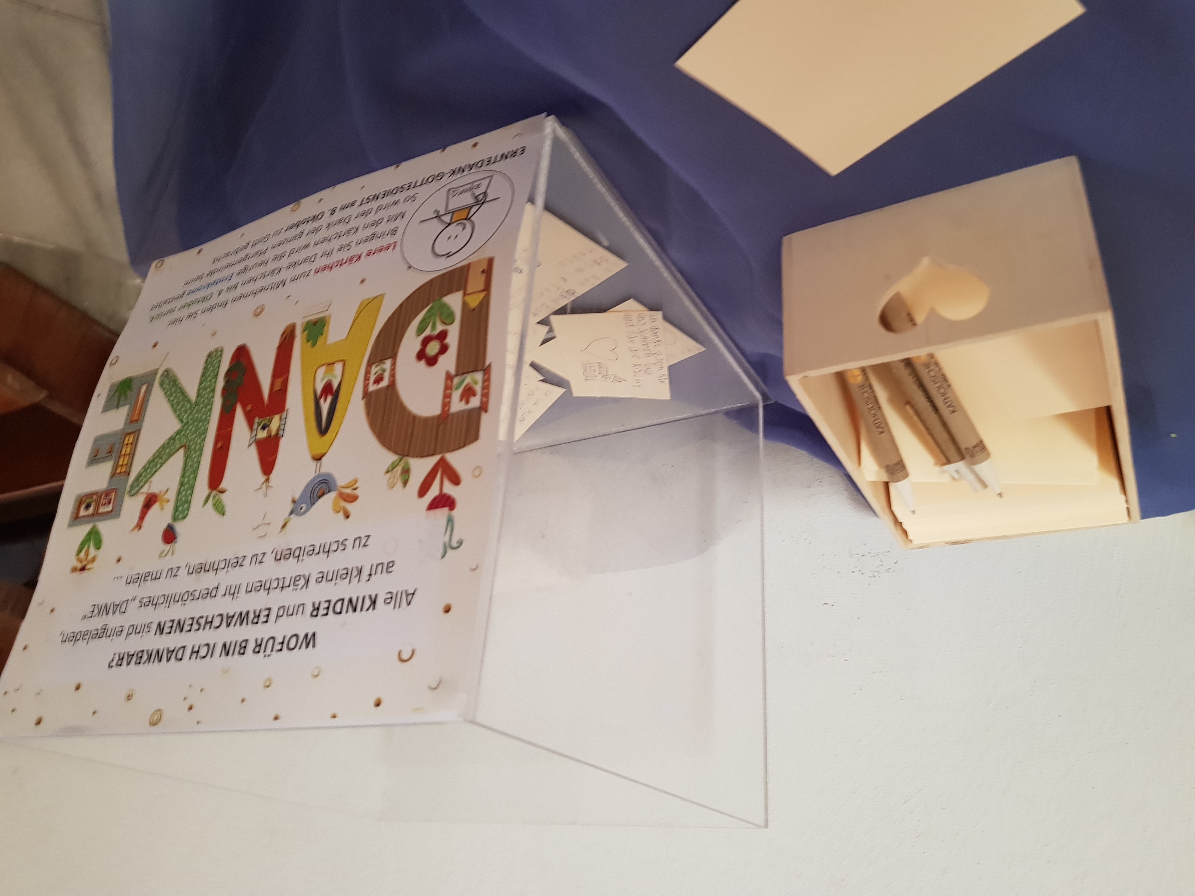 Folder mit Anleitungen zu den einzelnen Einheit liegen in der Aloisiuskapelle in der Kirche auf.
