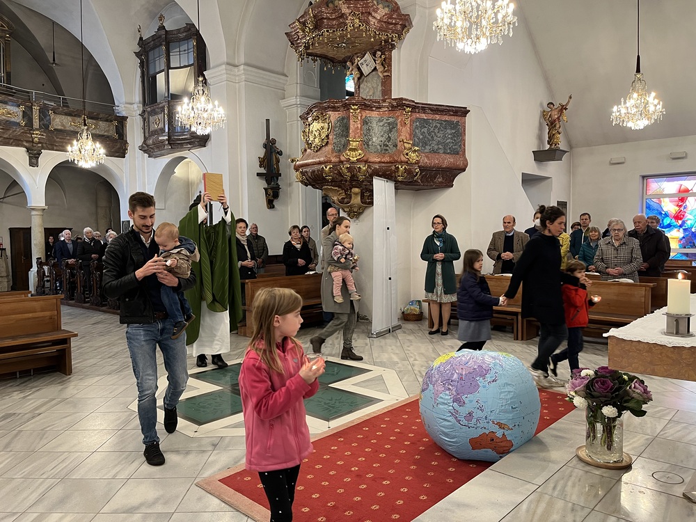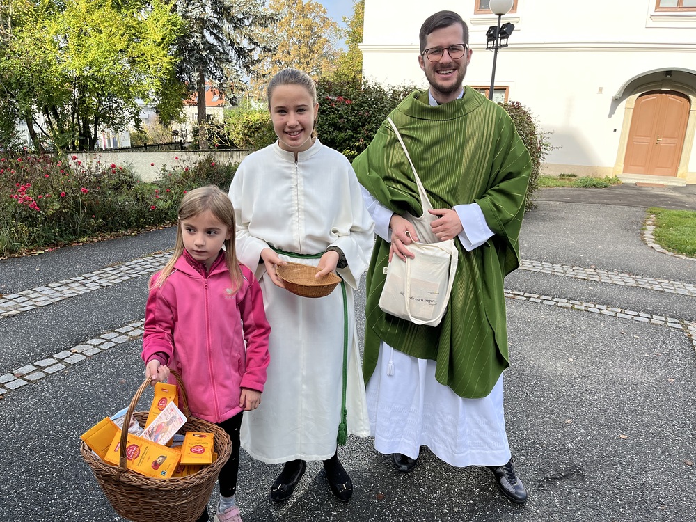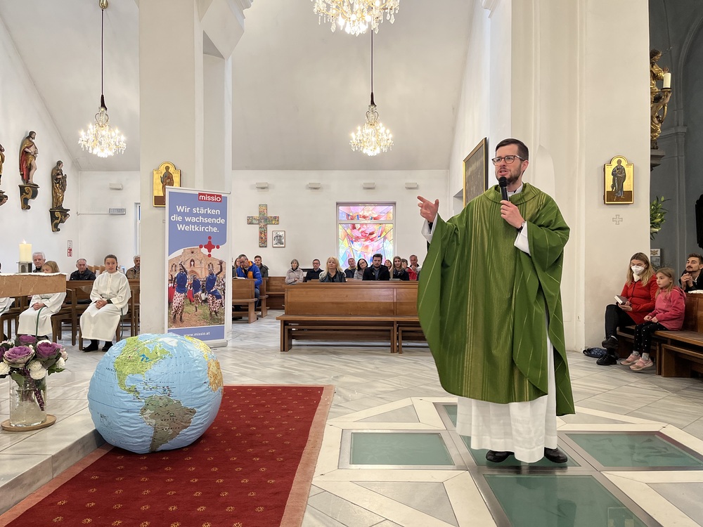 Bruder Niklas Müller, der neue Missiodirektor Steiermark, feiert am Weltmissionssonntag den Gottesdienst in der Pfarre Graz-St. Peter. Er ist seit Oktober Kaplan im Seelsorgeraum Graz-Südost. Nach dem Gottesdienst verkaufen MinistrantInnen und Jungscharkinder Schokopralinen und Chips der Missio-Jugendaktion.