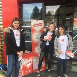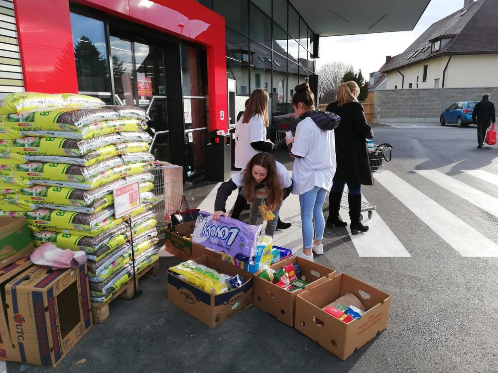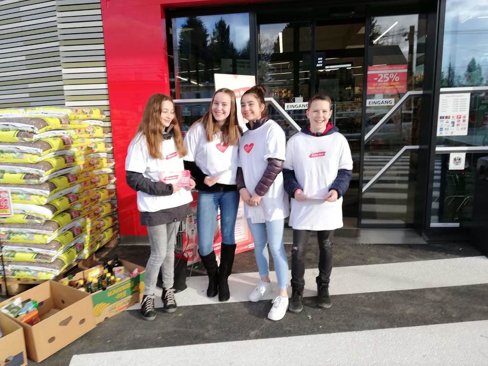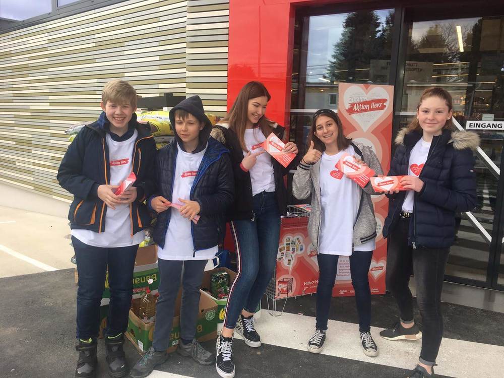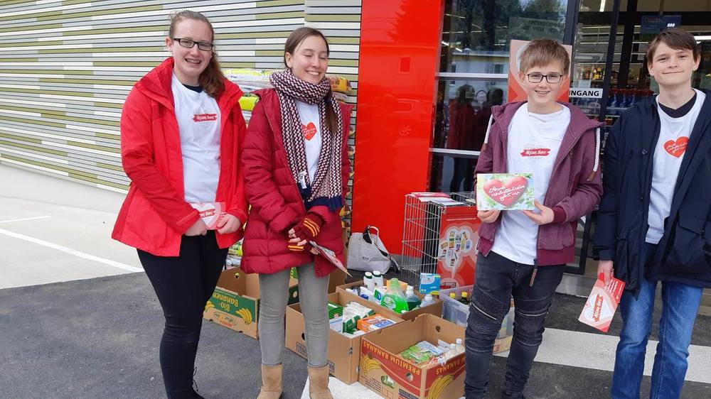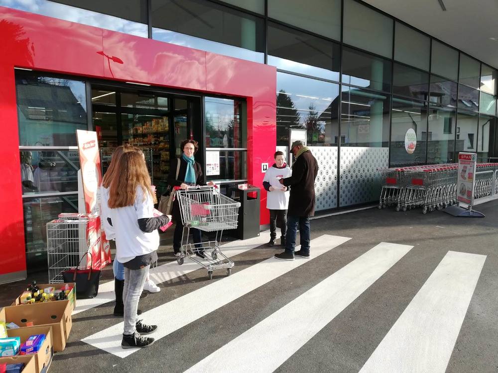 Im Rahmen der Aktion Herz sammelten unsere Firmlinge Lebensmittel vor der Sparfiliale in der Petrifelderstrasse. Dank ihres Eifers verdoppelte sich die Menge der gesammelten Lebensmittel.