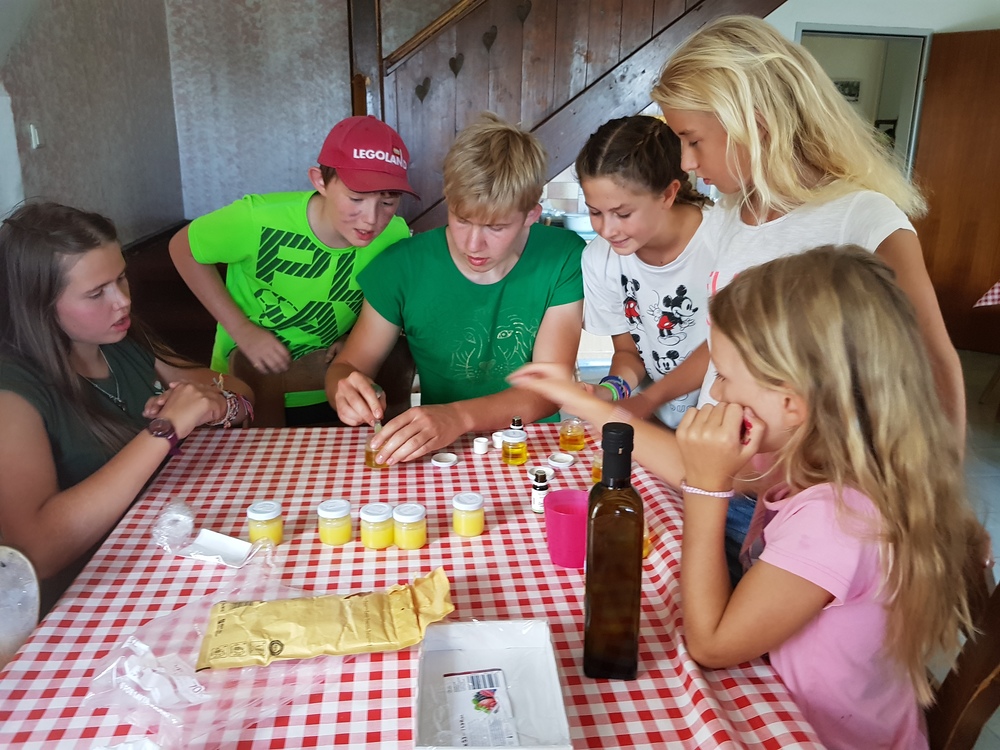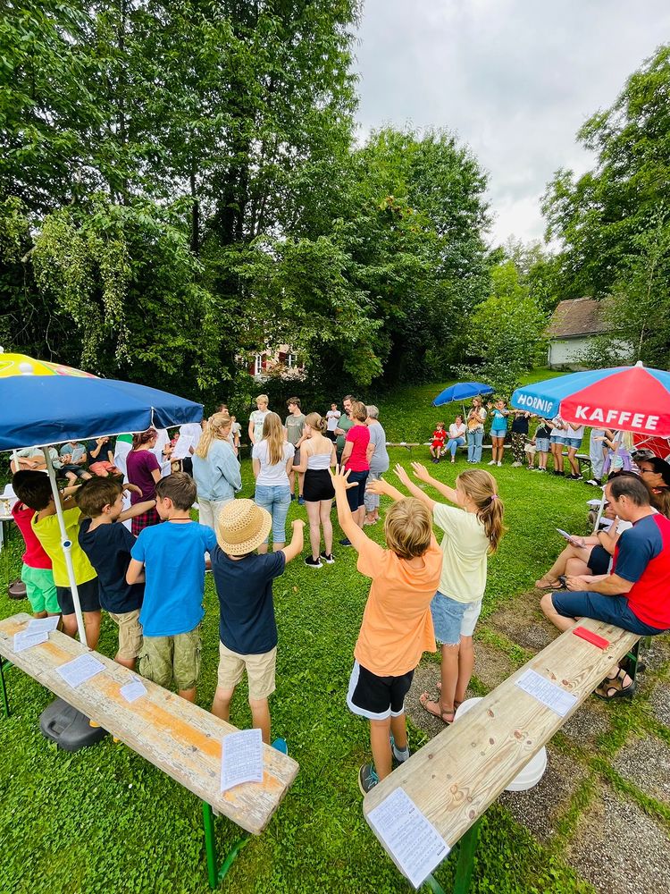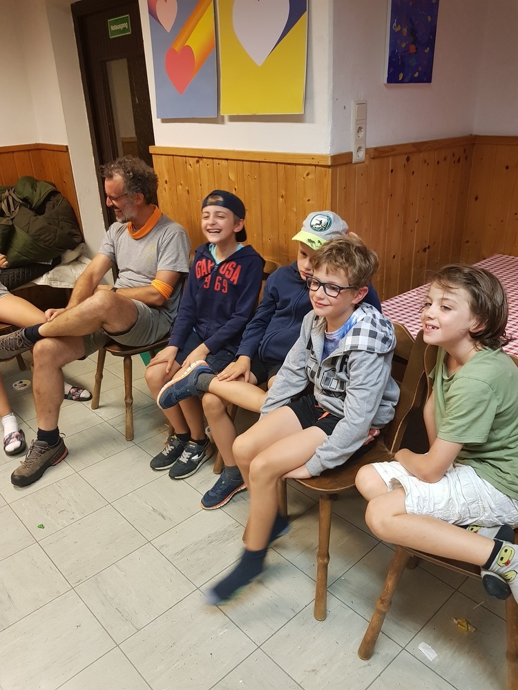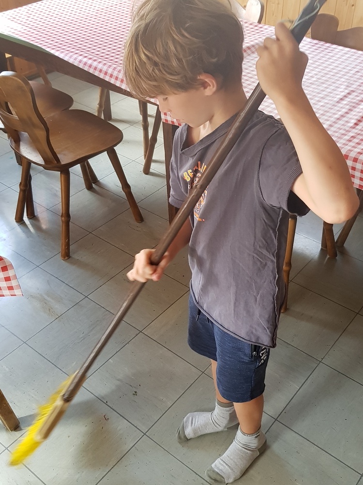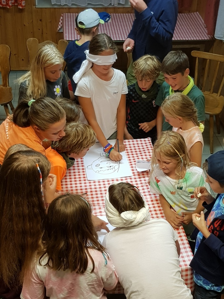 Am Sonntag starteten wir das Jungschar- und Minilager - gemeinsam mit den Eltern - mit einem Gottesdienst. Dann wurden die Eltern verabschiedet und die Zimmer bezogen. Nach Kennenlernspielen und einer Einstimmung zum Lagerthema "König David" wurden die 4 Gruppen (Ichtys = Fisch, Astron = Stern, Kinora = Harfe, Royals = königliche Familie) eingeteilt, die die ganze Woche gemeinsam die Dienste verrichteten (Küchendienst, Kehren, Bad+WC, Gebet und Tagesrückblick). Am Abend erzählte Giovanni eine Geschichte von König David und nach einem Abendgebet und dem Zähneputzen fielen alle müde ins Bett.