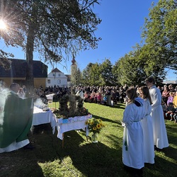 Am 6. Oktober durften wir bei wunderschönem Herbstwetter auf der Pfarrwiese von St. Peter Erntedank feiern.