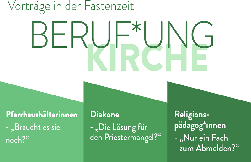 Die Kirche gehört weltweit zu den größten Arbeitgeberinnen. Haupt- und ehrenamtliche Mitarbeiter*innen sorgen dafür, dass Glaube gelebt und kirchliche Organisationen wirtschaftlich geführt werden können. In der Reihe „Vorträge in der Fastenzeit“ wollen wir sehr wichtige Berufe neben den bekannten Hauptamtlichen in den Fokus stellen: Pfarrhaushälterinnen, Diakone und Religionspädagog*innen.