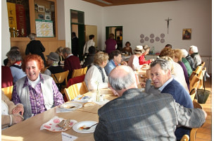 Gemütliches Zusammensitzen nach der Sonntagsmesse!