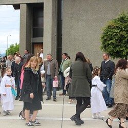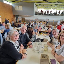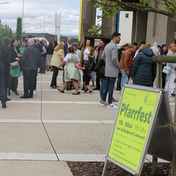 Nach der wunderschön gestalteten Erstkommunion zogen die Erstkommunionkinder in die Halle um beim Start des Pfarrfests dabei zu sein. Nachdem wir letztes Jahr richtiges Wetterglück hatten, mussten wir diesmal in die Veranstaltungshalle ausweichen. Dem Wetter zum Trotz war die Stimmung sehr gut. Das Kinderprogramm war gut besucht, viele Preise wurden verlost und natürlich gab es wieder genug zu essen und zu trinken. Obwohl diesmal besonders viele Torten gebacken wurden, waren am Schluss alle weg.