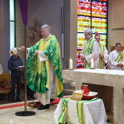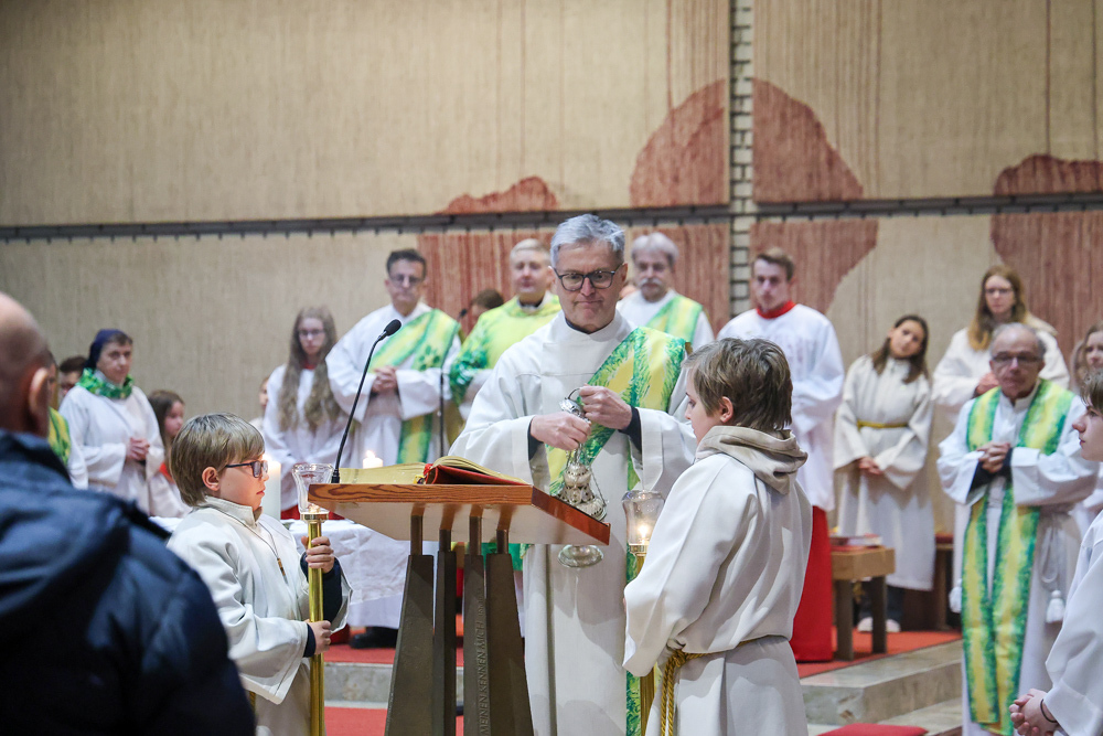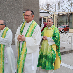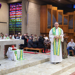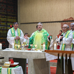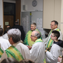 Musikalisch wunderbar umrahmt wurde die Feier vom Seelsorgeraumchor unter der Leitung von Siegfried Kager. Im Altarraum feierte unser gesamtes Seelsorgeteam sowie die Diakone mit. Nicht zu vergessen die etwa 20 Ministrantinnen und Ministranten aus unseren Pfarren. Auch Lektoren und Kommunionspenderinnen aus allen sechs Pfarren gestalteten die Feier mit.