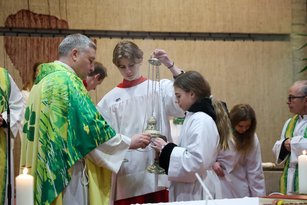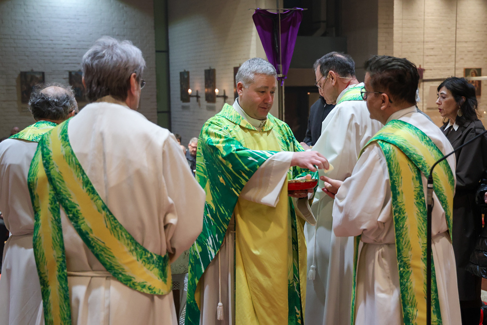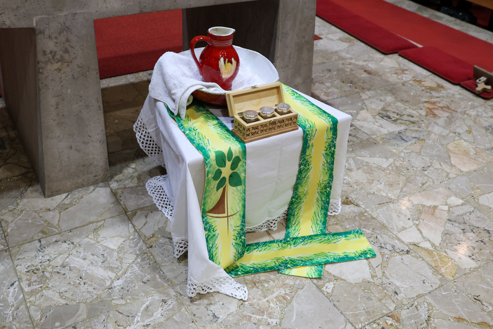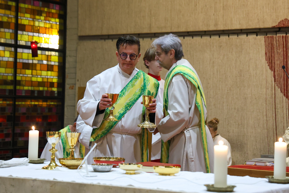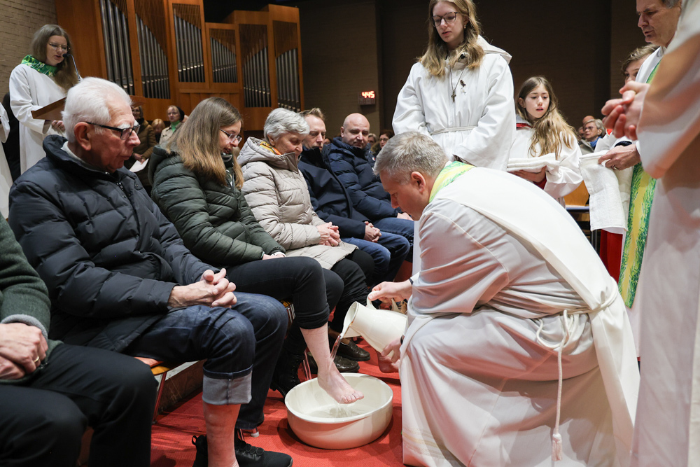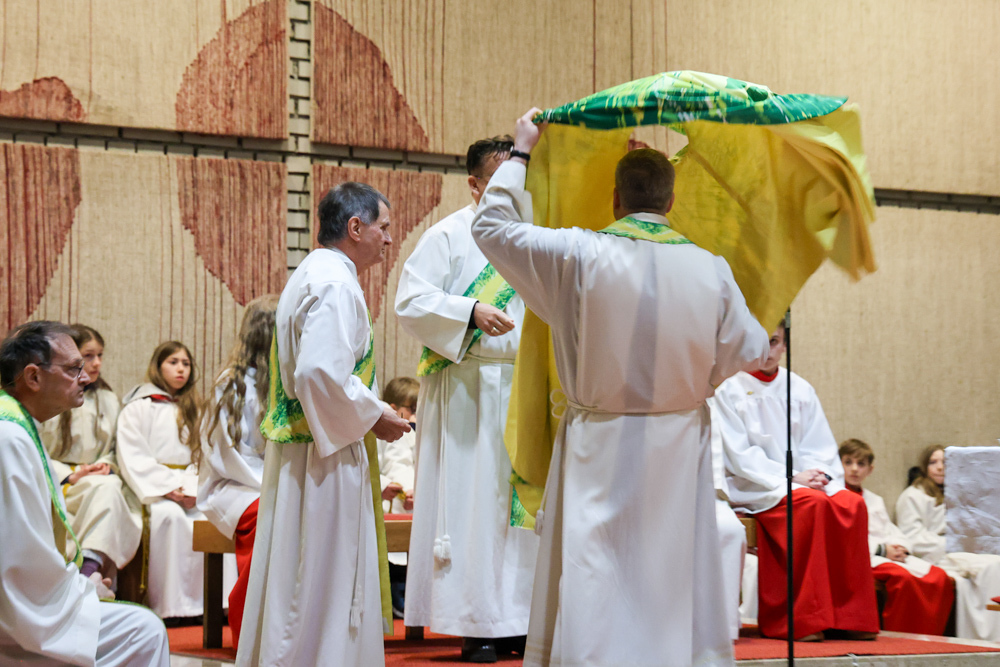 Bei diesem Mahl nahm Jesus das Brot, brach es, reichte es seinen Jüngerinnen und Jüngern und sagte: „Das ist mein Leib, der für euch hingegeben wird.“ Doch Jesus ging noch einen Schritt weiter: Er wusch die Füße seiner Freunde – nicht als Zeichen von Macht, sondern von Liebe und Dienstbereitschaft. Deshalb wurden stellvertretend zwei Personen jeder Pfarre von Pfarrer Claudiu Budău und Diakon Franz Habith die Füße gewaschen.