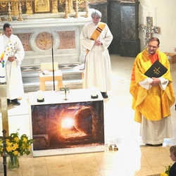 Mit einer großen Gottesdienstgemeinschaft feierte Vikar Gerhard Hatzmann am Ostermontag in unserer Pfarrkirche den Festgottesdienst, unterstützt von den Diakonen Michi Zepf und Franz Habith und einigen Minis. Unter diesen befand sich auch ein Geburtstagskind, Victor, dem gleich zu Beginn „viel Glück und viel Segen“ gewünscht wurde.